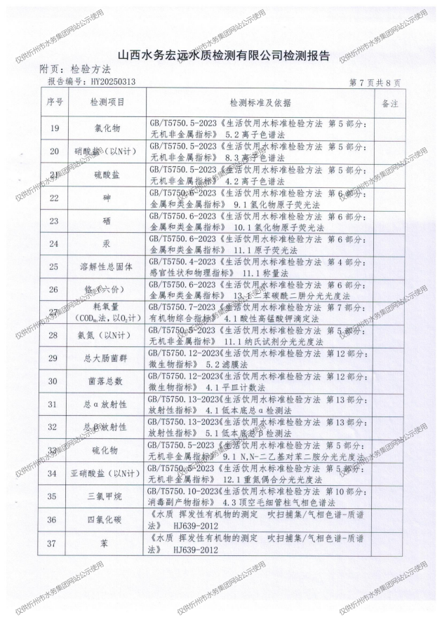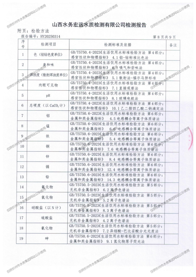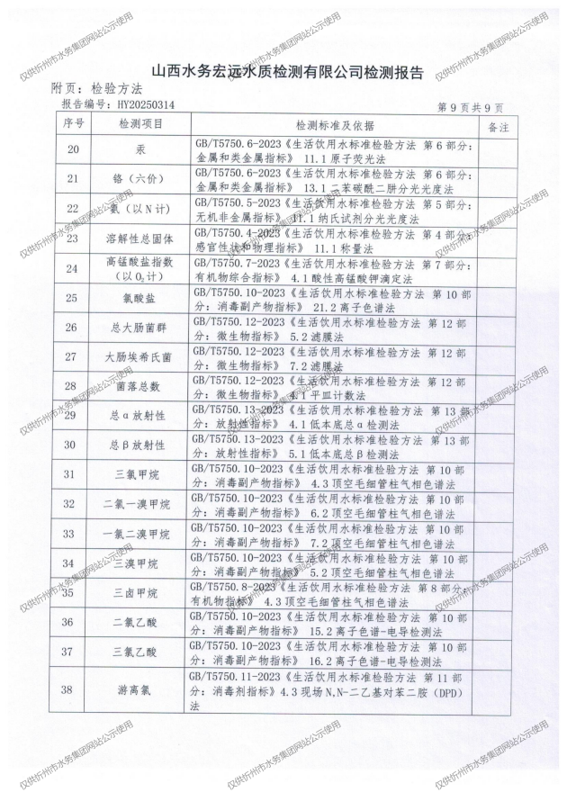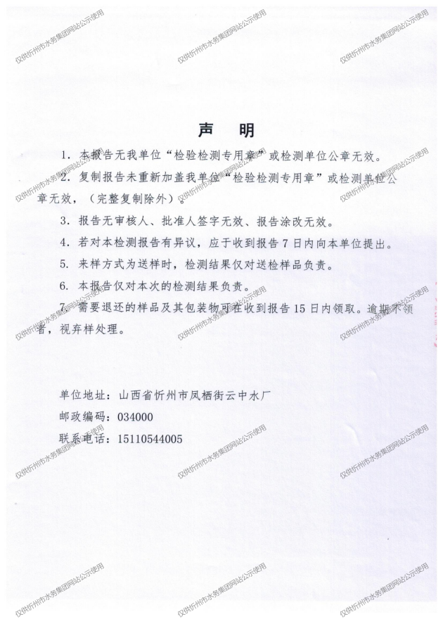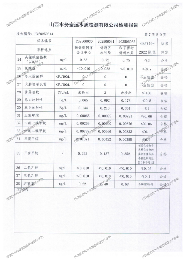忻州城區公共供水水源水、出廠水、管網水、管網末梢水2025年6月份水質信息公示