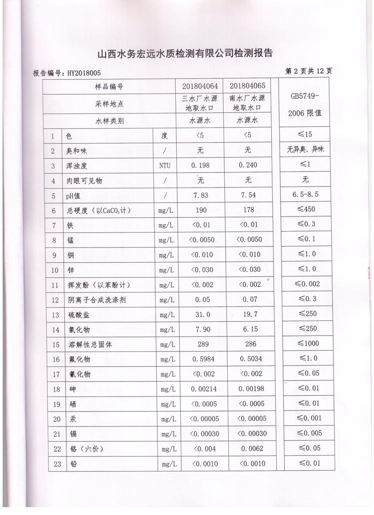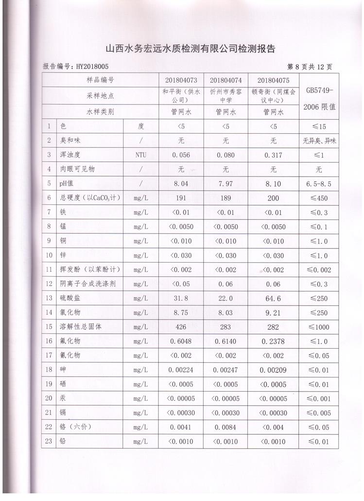 忻州城區(qū)公共供水水源水、出廠水、管網(wǎng)水、管網(wǎng)末梢水2018年4月份水質信息公示