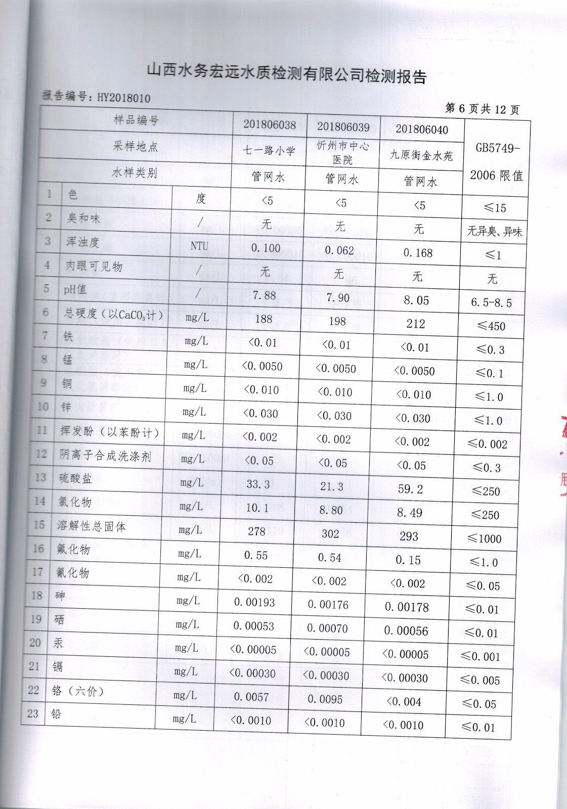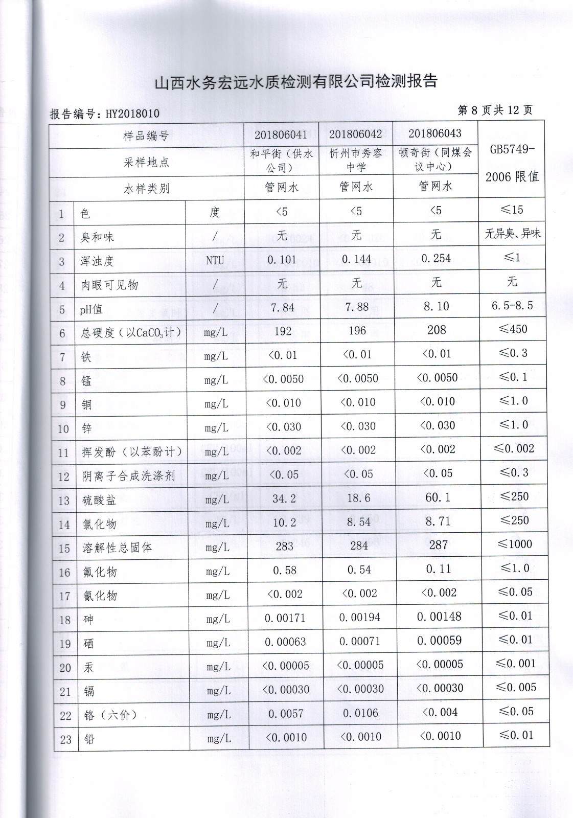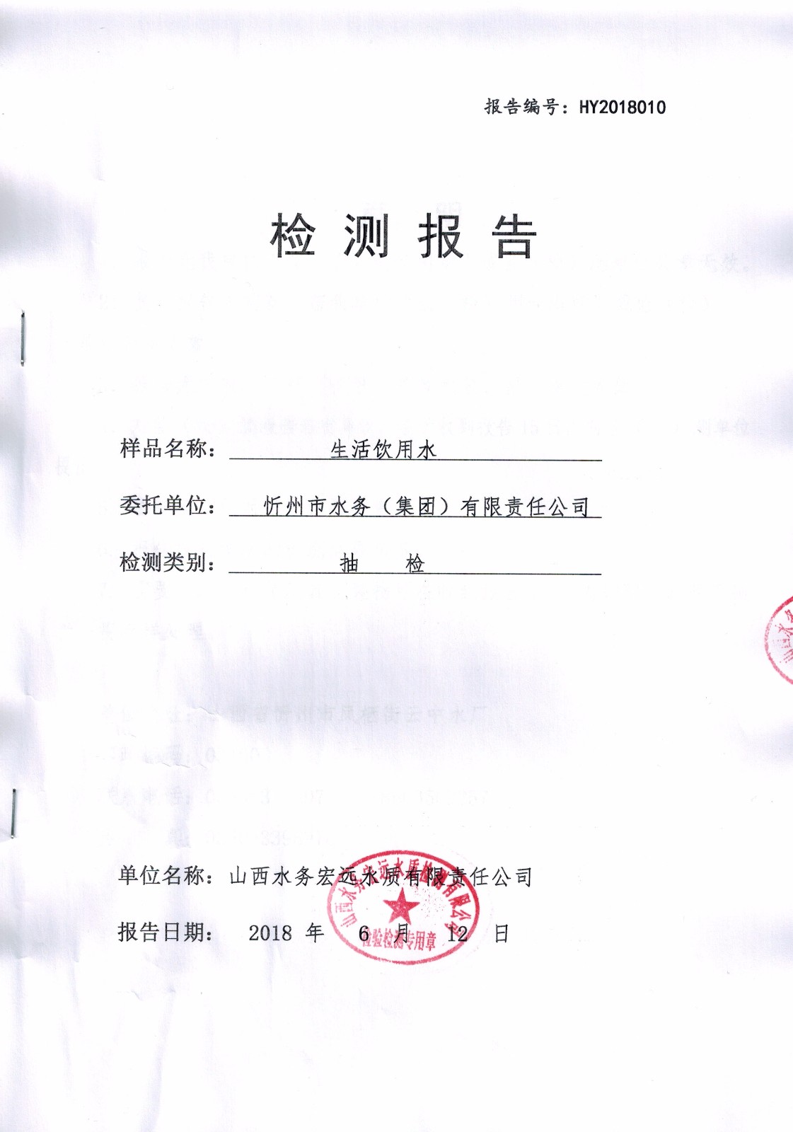 忻州城區公共供水水源水、出廠水、管網水、管網末梢水2018年6月份水質信息公示
