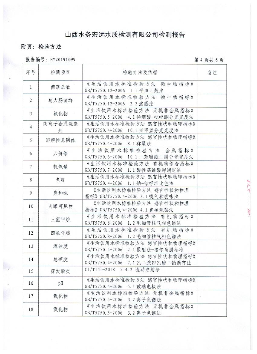 2019年忻州城區公共供水南水廠、三水廠水源水39項地下水水質全分析