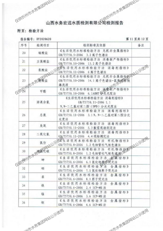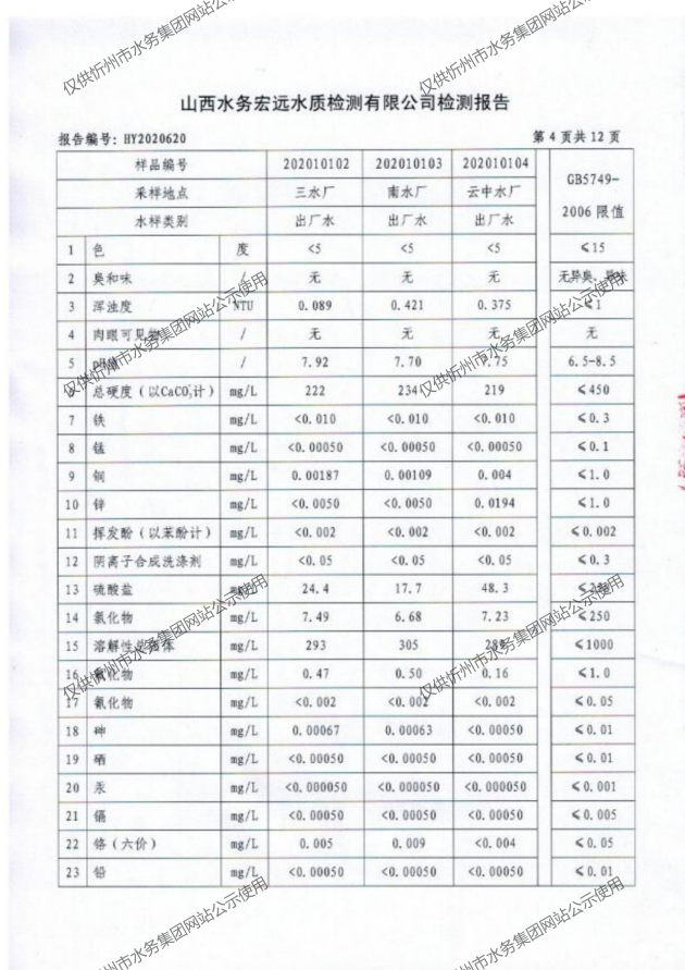 忻州城區公共供水水源水、出廠水、管網水、管網末梢水2020年10月份水質信息公示