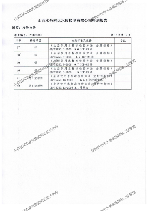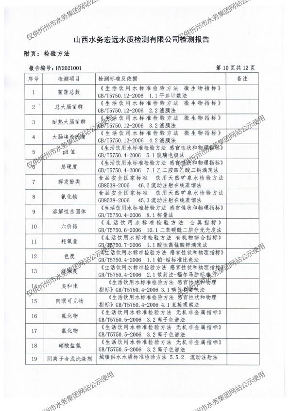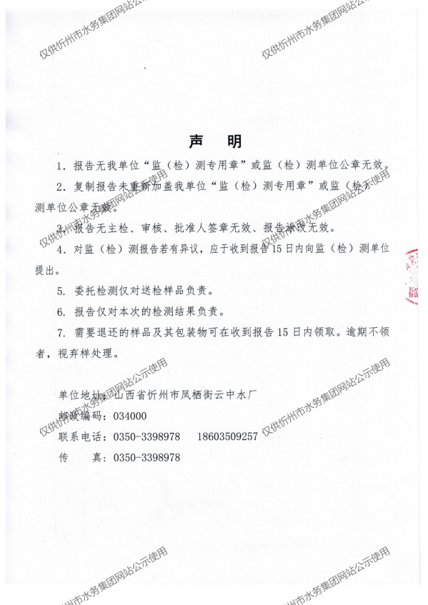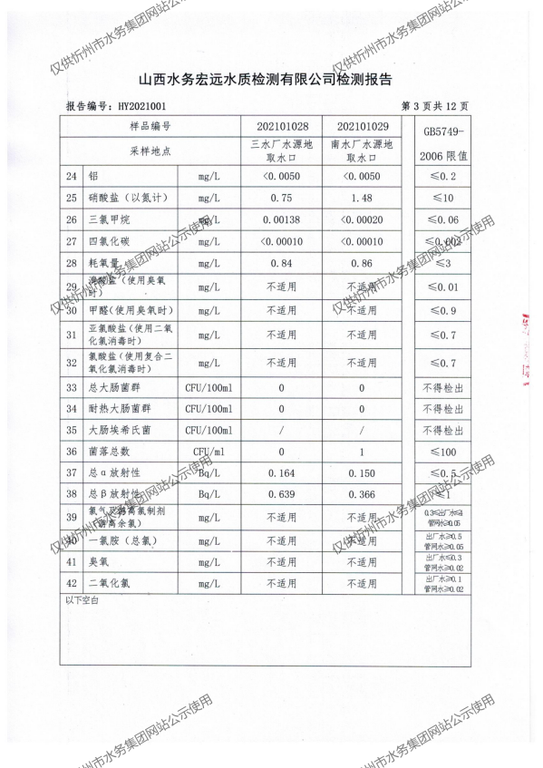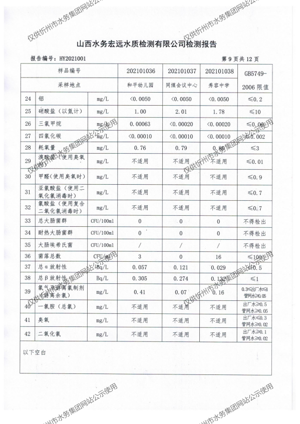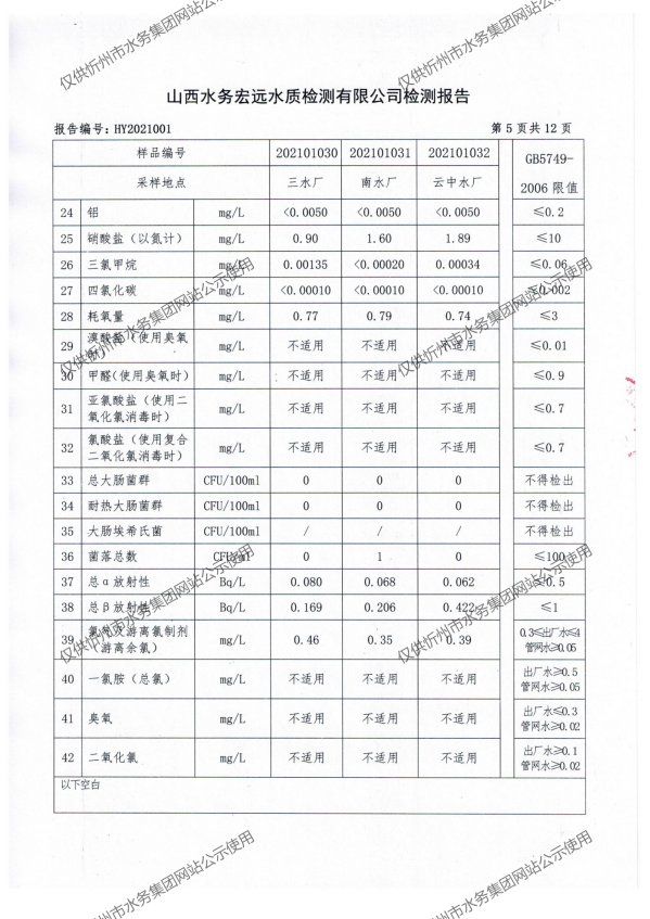 忻州城區公共供水水源水、出廠水、管網水、管網末梢水2021年1月份水質信息公示